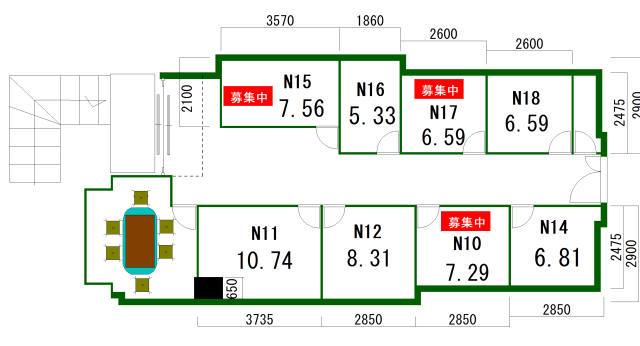 2階北フロアー 17号室・・・すぐにご利用可能